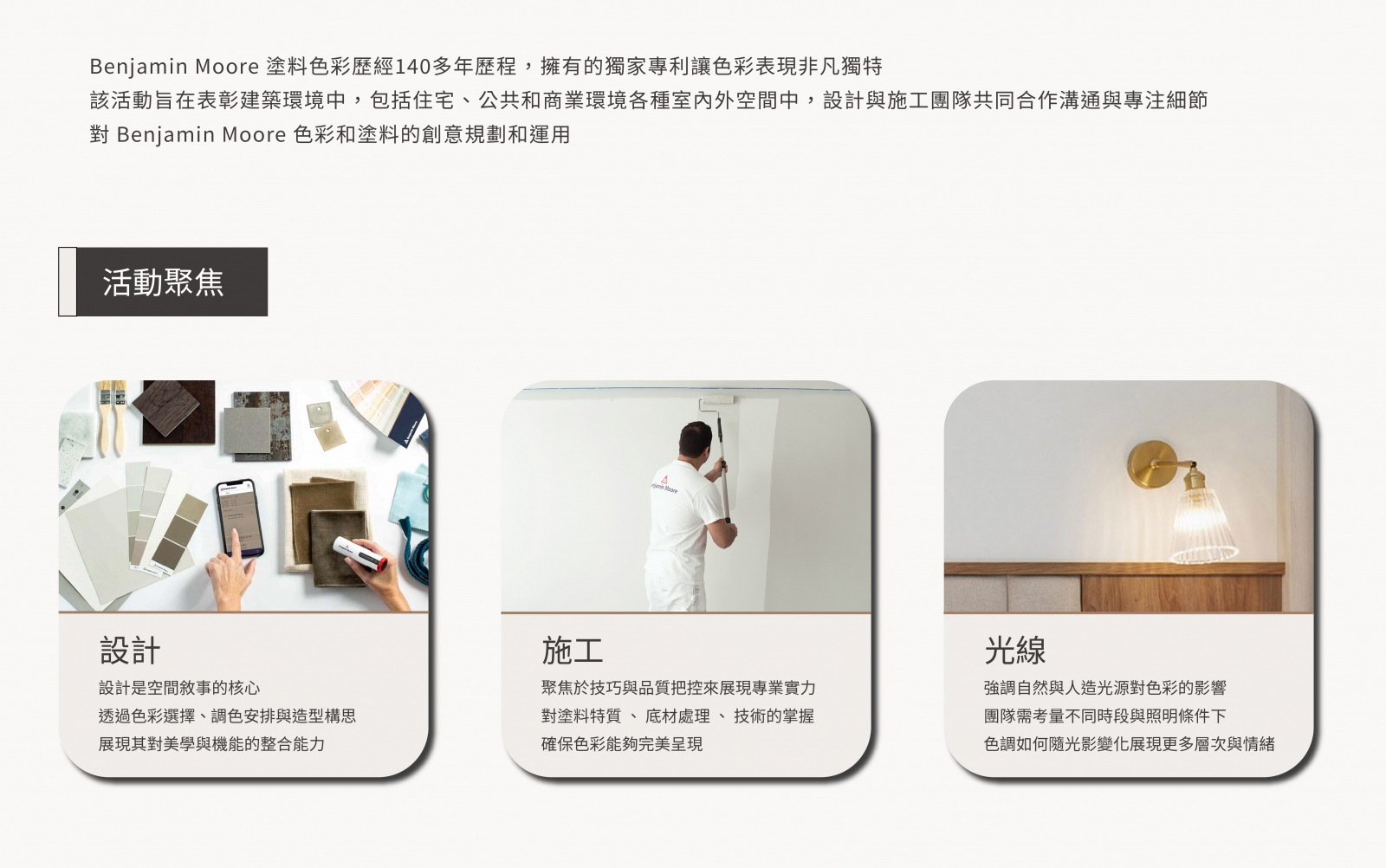 精選設計師作品與色號運用,透過真實場景示範,協助你想像塗料上牆後的效果,找到最貼近理想的色彩方向。