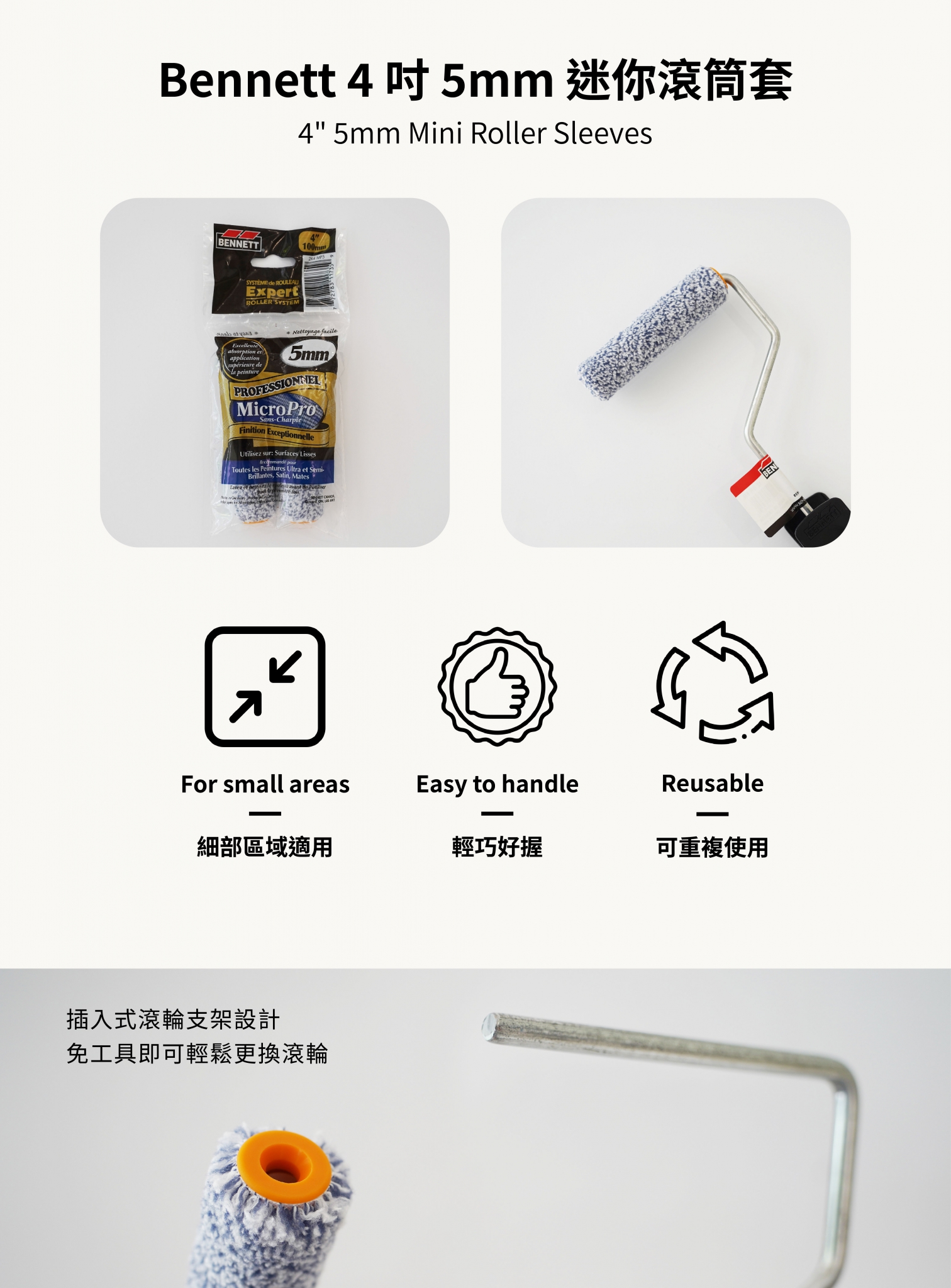 加拿大原裝進口 Bennett 4 吋 5mm 迷你滾筒套 (2 入裝)
