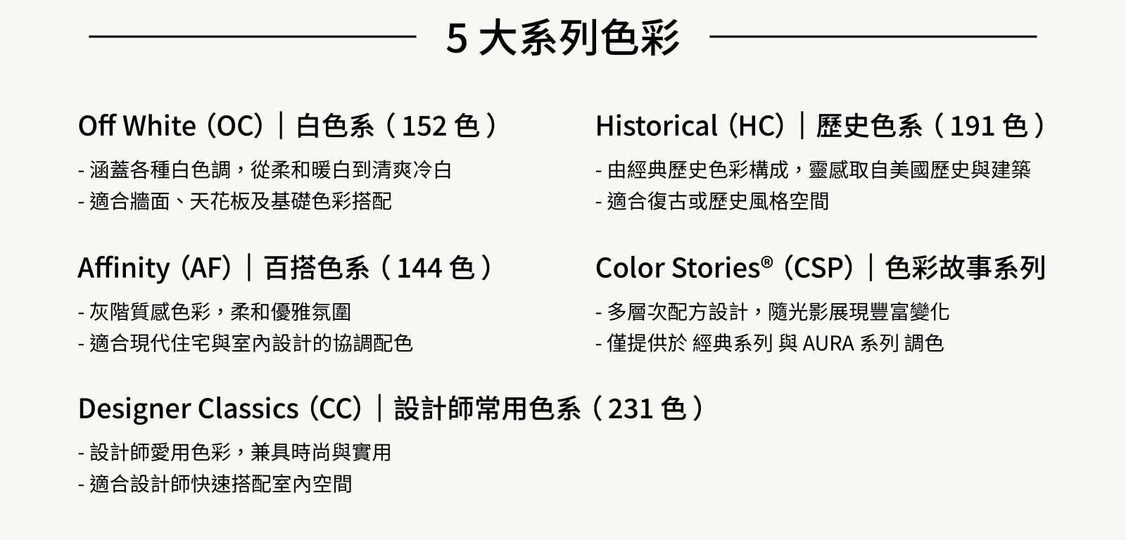 精選最具代表性的色彩系列 Representing some of our most revered collections of colors