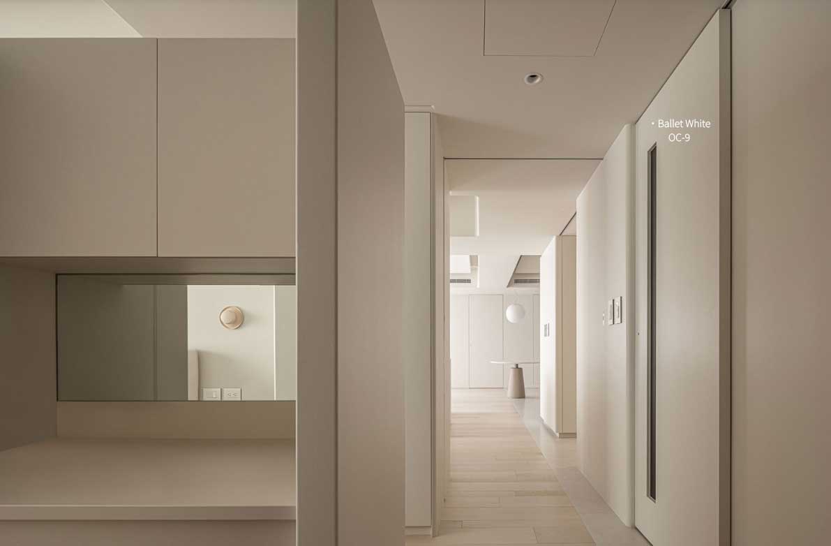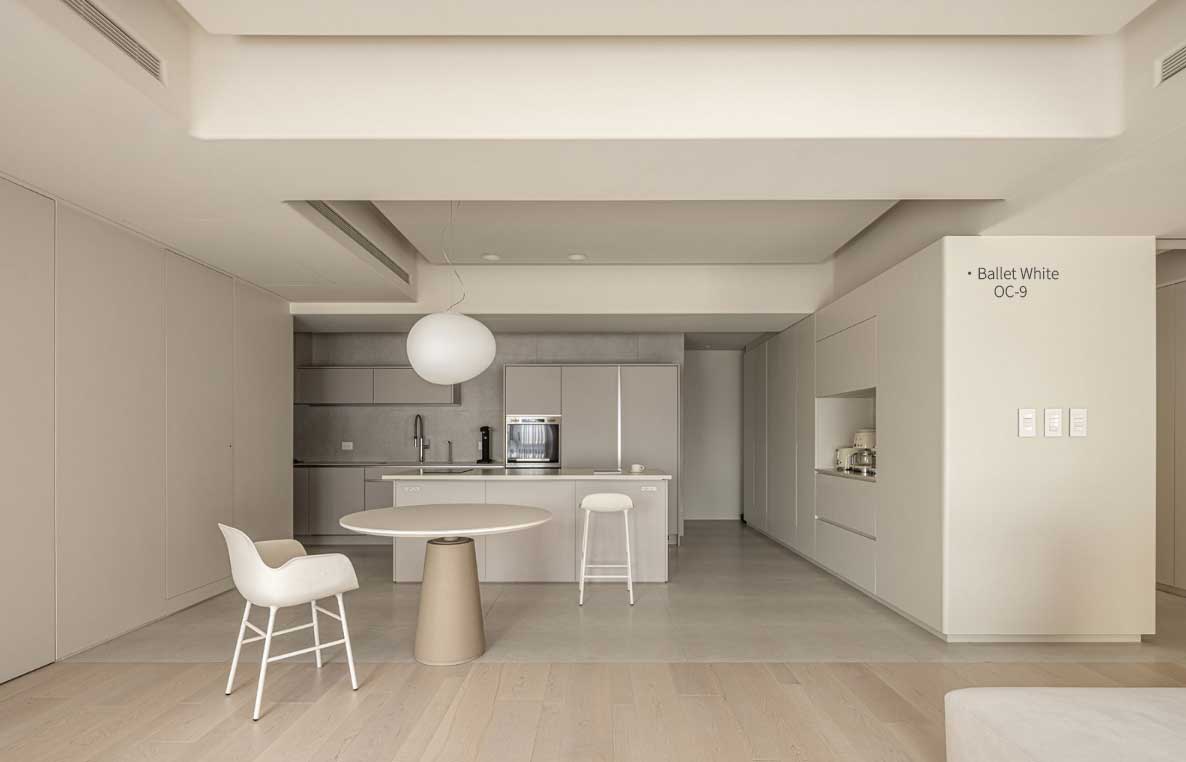 如果你喜歡奶油/奶茶色,又不希望牆面太偏黃,就很適合選擇芭蕾白 OC-9