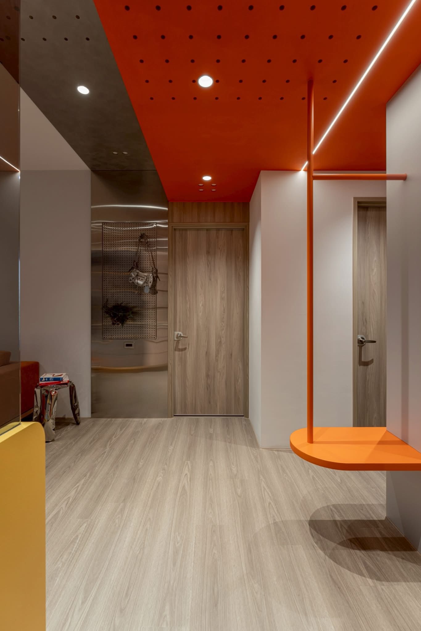 牆面|超耐磨漆 蛋殼光 色號|2015-10_Electric Orange 784_Blue Macaw 299_Firefly